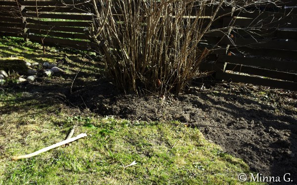 Korkein kohta… ryteikön alta paljastui muuten karviaispensaan taimi 🙂 Taidan sijoittaa sen uuteen, parempaan paikkaan.